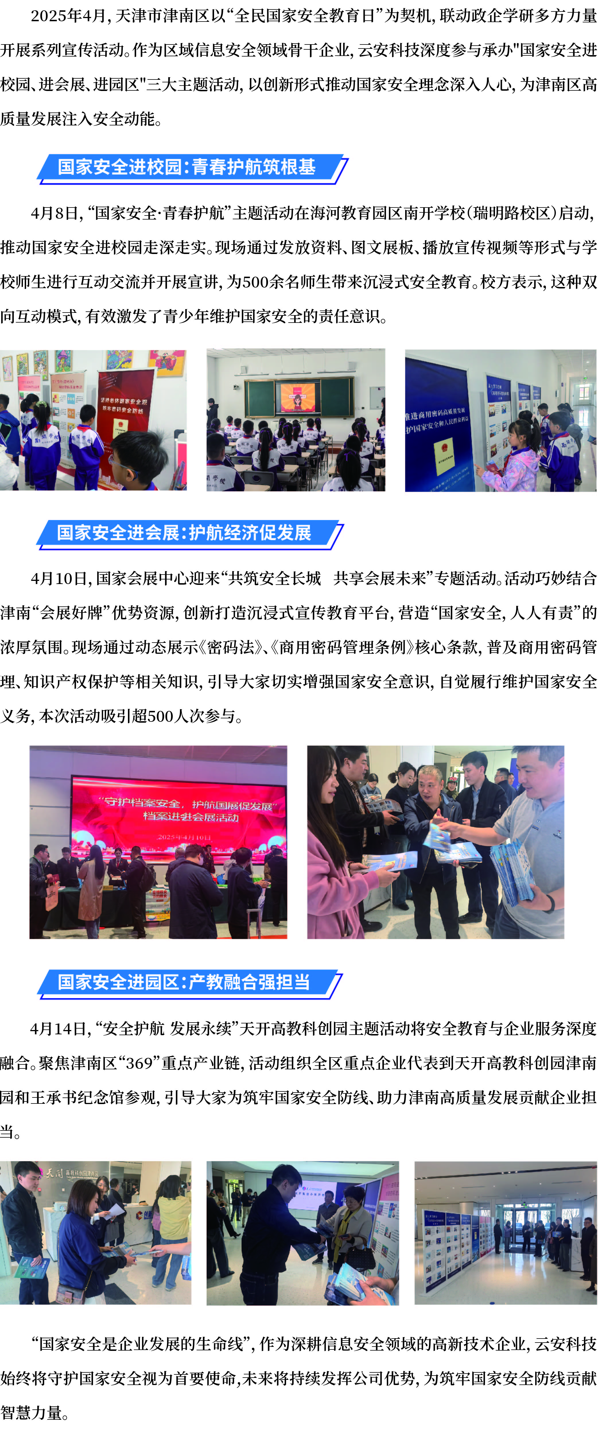 云安科技助力津南区国家安全教育 多维活动筑牢全民安全防线
